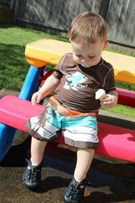 We had a GORGEOUS Saturday!! it was almost 80 degrees and the kids were so excited to play outside and get wet!!, so while daddy did yard work they got to play in the water table and eat some ice cream!!